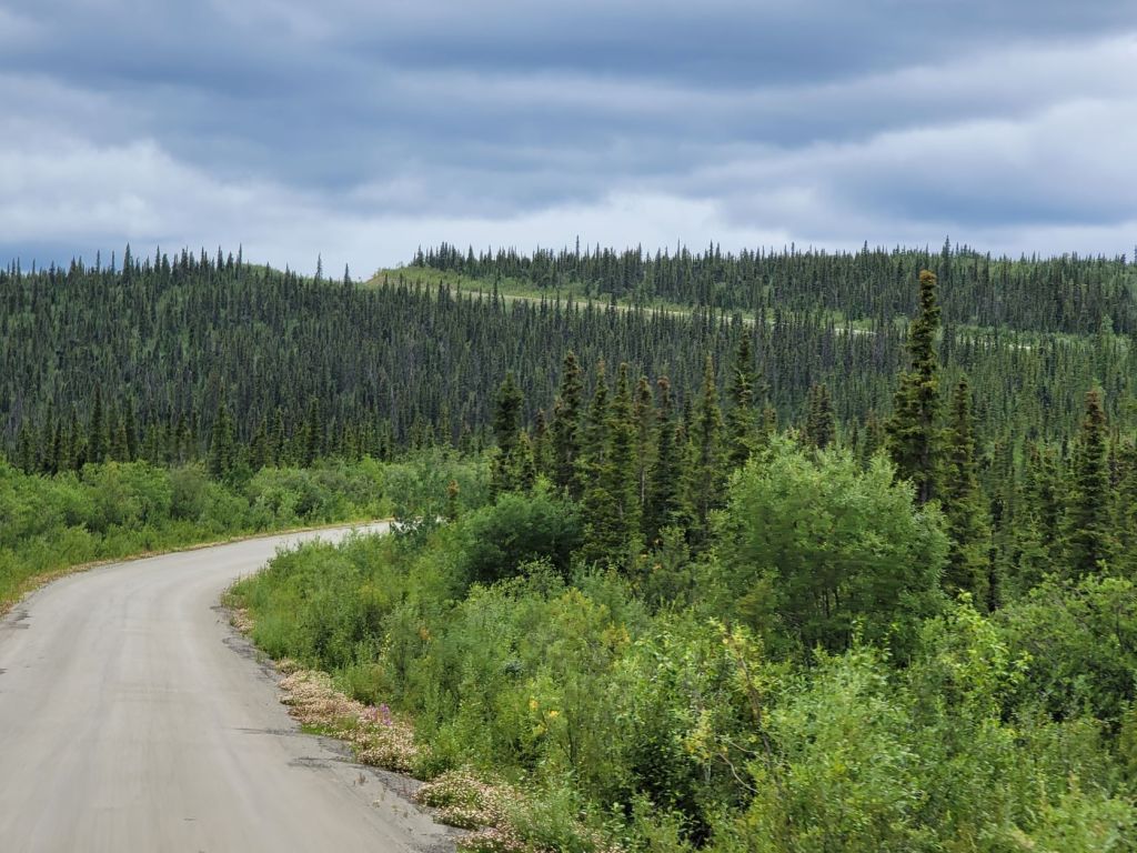 We’re driving on the Top of the World hwy to cross over to the US border and into Alaska. “The Top of the World Highway is a 127 km-long highway, beginning at a junction with the Taylor Highway near Jack Wade, Alaska traveling east to its terminus at the ferry terminal in West Dawson, Yukon, on the western banks of the Yukon River.” Wikipedia