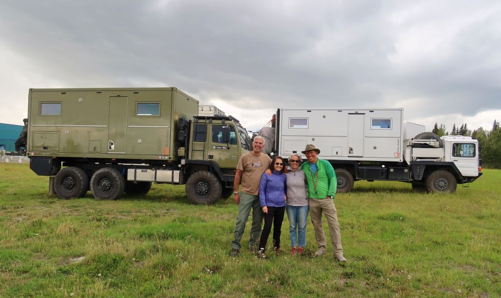 We barely finished breakfast and Paul got a txt message from another Expedition buddy trying to meet up with us in Fairbanks. This was the day we were scheduled to depart for the Denali National Park. We agreed to meet up with them for lunch at 1:00pm at the Lemongrass Thai Restaurant. We met Pato & Cathy in front of the restaurant and the boys couldn’t stop talking about their trucks, if left alone, they could go on all day about their big toys. Their truck name is @Chipichipi6x6, another Bliss box almost identical to ours. The boys wanted to take pictures of their trucks together so we went back to the Carlson center for pictures and continue to compare the ins and outs of the two trucks for hours.