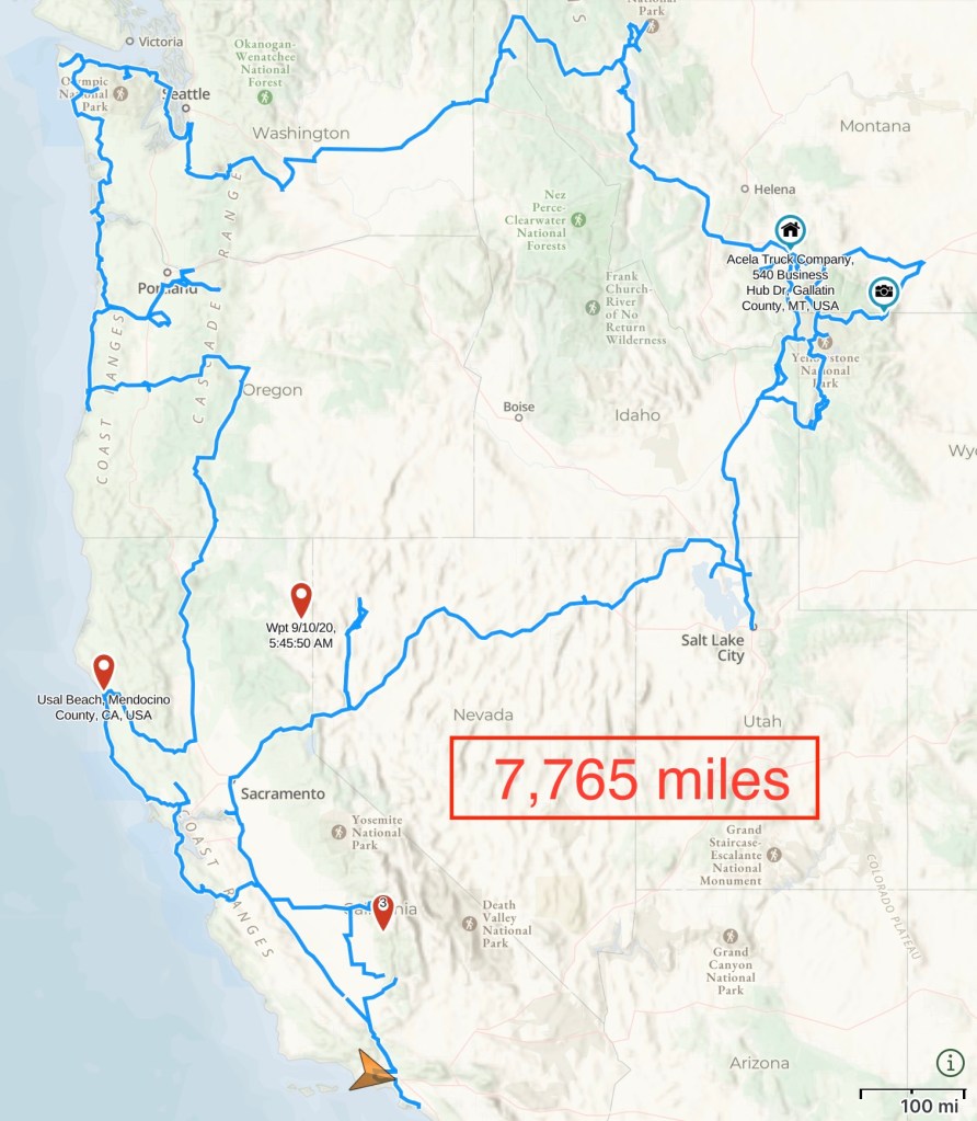 In the end we were not allowed to cross into Canada and travel to the arctic as originally planned. Nevertheless ~7,700 miles was a heck of a trip!