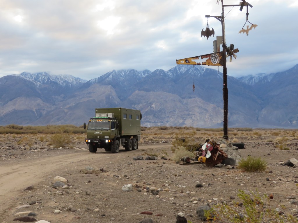 Paul continues the narrative….The Death Valley National Park has become one of my favorite venues for trips in my Land Rovers so it seemed only natural to take BAT there too to get some trail time on him. My first stop on the way to Death Valley was Alabama Hills near Lone Pine. This is a place that I always wanted to check out and a see why people talk about this place. Many Western movies were shot in these hills. While I only stayed one night I did enjoy a great walk the next morning exploring the rocks near my disbursed camp location.