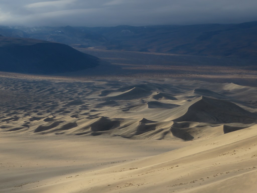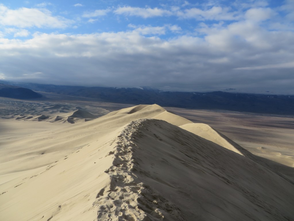 Next it was north to the Eureka sand dunes which I had climbed several years ago with Land Rover friends but this time a solo climb was in order. If you have ever climbed a dune you will know that it is not easy. For every three steps forward the dune moves you two steps backwards so progress is slow and quite tiring. The view however is still spectacular.