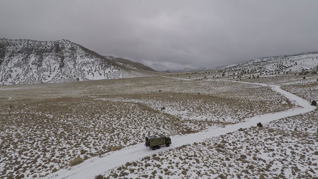 Over night camp spot in the ‘Triangle’ among the Joshua trees. BAT likes to hide while enjoying a view of the snow capped mountains behind.