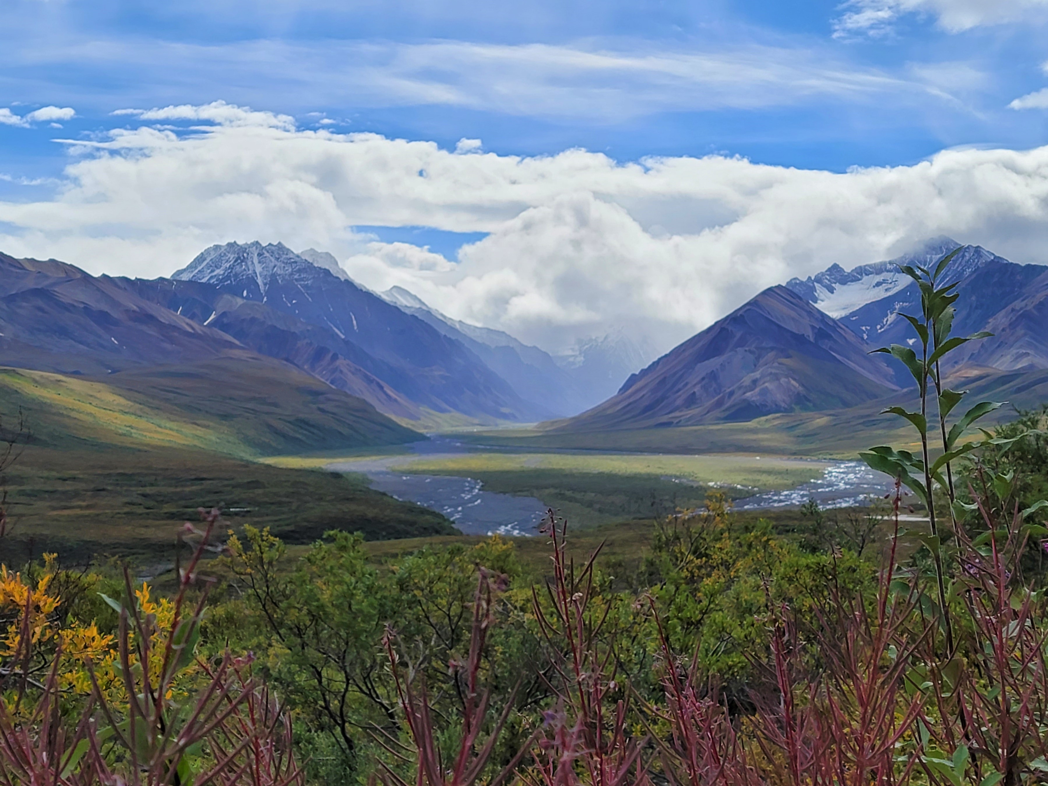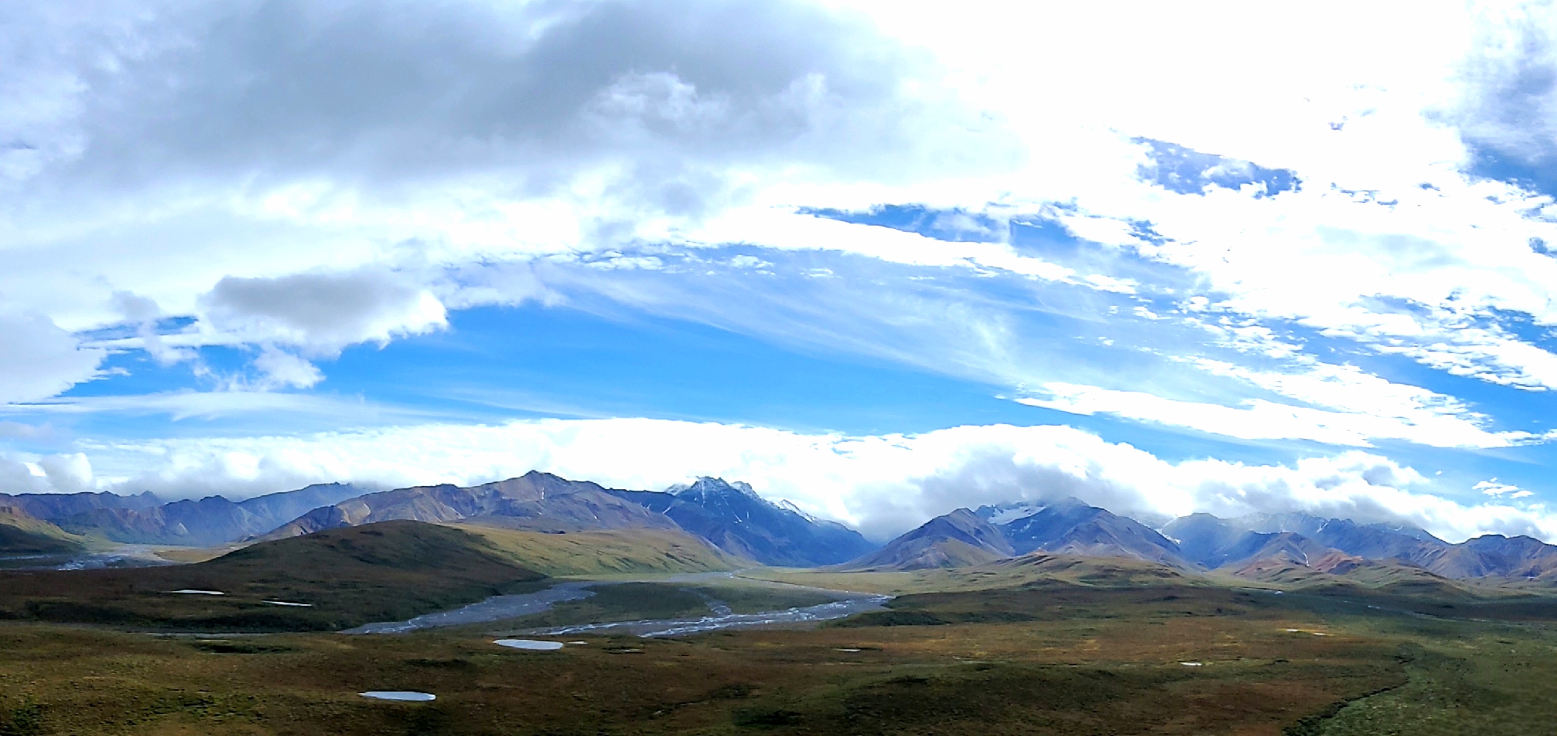 “Denali is six million acres of wild land, bisected by one ribbon of road. Travelers along it see the relatively low-elevation taiga forest give way to high alpine tundra and snowy mountains, culminating in North America’s tallest peak, 20,310′ Denali. Wild animals large and small roam un-fenced lands, living as they have for ages. Solitude, tranquility and wilderness await.” Excerpts from the NPS website .