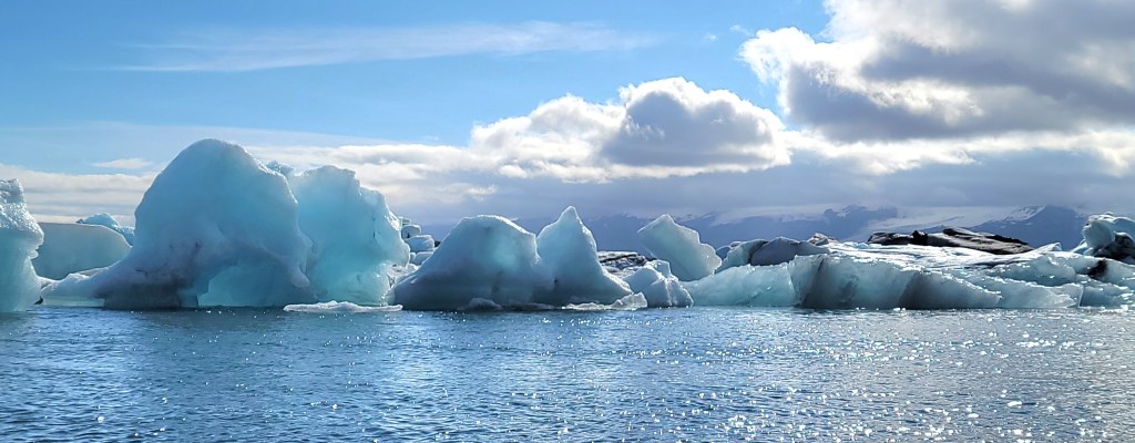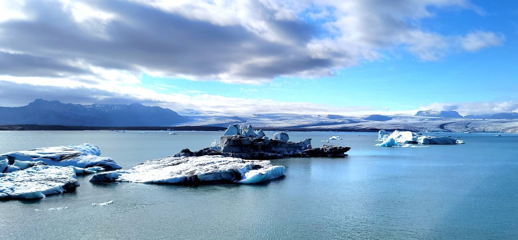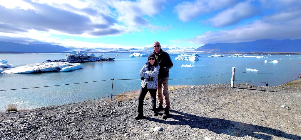 The ring road continues to display glaciers after glaciers; it’s as though we have stumbled upon glaciers wonderland. Then all of a sudden, we saw a big parking lot with lots of cars and as we got closer, I gasped excitedly: “look, glaciers haven!” We parked BAT and discovered that we have just entered “Glaciers Lagoon!” OMG, glaciers in the back drop and icebergs are scattered across the lagoon in a beautiful arrangement. What an amazing sight! Words cannot simply describe this natural wonder. It is just magical! Shame on us for not having done our homework to visit this iconic attraction, but thank heavens for guiding us here to enjoy this wonderland.
