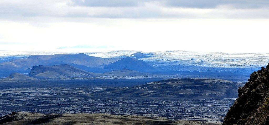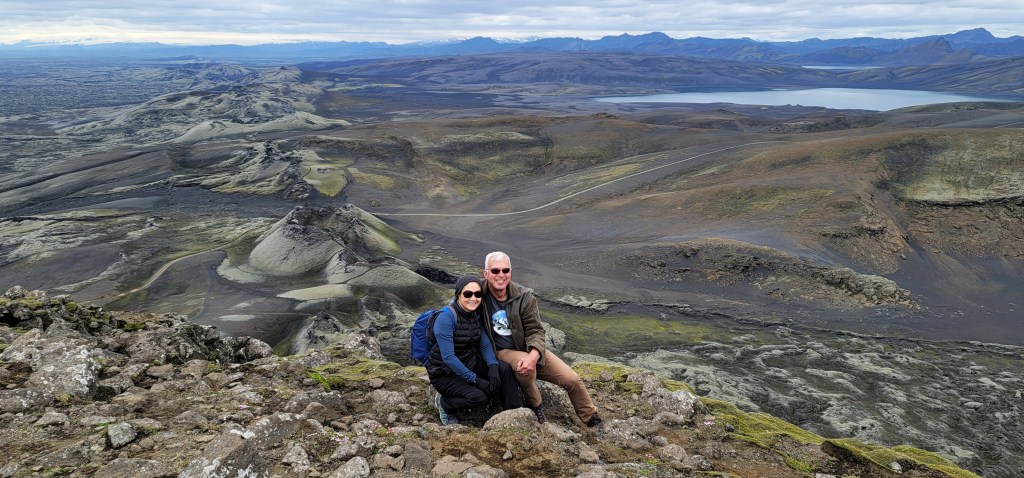 We did a hike up Mt. Laki, which was a very steep hike. At the summit, the view was magnificent. To the left is a row of craters; in the center is Laki Crater lake, and to the right is a massive glacier. The boys were droning and the girls took pictures of the area. We spent quite a bit of time at the view point before descending, and then back to our truck.