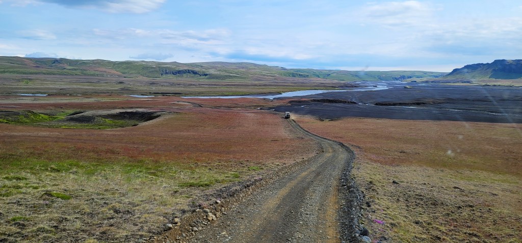 We caught up with Tiffany & Kurtis near Kálfafell, gassed up and headed for the F-roads. The F-roads are unpaved gravel tracks that only open during the summer months and are only accessible in a 4×4 vehicle. Most F-roads crisscross the highlands; the central mountainous region. (The “F” comes from the work “fjall” which means mountain in Icelandic.)