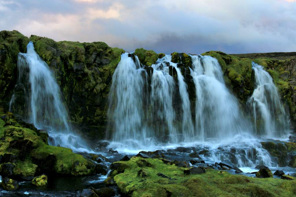 We continue making our way northwest around the peninsula. We spotted another waterfall from the road, Grundarfoss, so we pulled in. I initially got lazy and didn’t want to hike to the fall, but I felt like I’ve been gaining weight on this trip, so I thought I’d better get some exercises in. Even though the weather is not sunny today, but it was mild, not as cold as I thought, and especially no wind. It turns out to be a very pleasant walk to the base of the fall, with babling water in the stream running off from the fall. The water is so clear that you can see all the colorful pebbles on the bottom of the stream. Wild flowers in yellow, purple, and white colors graciously lined both sides of the stream. The sight, sound and scent of nature brings so much joy & tranquility into my soul, and what a great way to start the day!