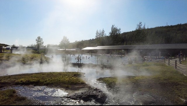 Our next stop was The Secret Lagoon! The adjacent active geyser which spouts every few minutes, (showing off for the guests), provide 100% of the water supply in the lagoon. The pool water flows continuously, and it takes only 24 hours to its complete replacement. Warm, clean, rich in sulfur, stays at 38-40 Celsius (100 – 104 degree Fahrenheit) all year round.