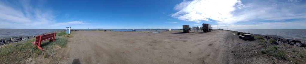 We walked around the little town of Tuk, checked out Grandma’s restaurant as a potential place for dinner tonight. The town is quiet, not a lot of activities here except for sandspit with the Arctic Circle sign. We came back to the Visitor center to get our certificate for “I traveled the highway to the Arctic Ocean” and “I dipped my toe in the Arctic Ocean in Tuktoyaktuk, NT Canada.” When I checked yesterday, the water temperature is about 42 degree F, so do we have enough nerve to take a dip and declare “yup, we did it or do we cheat and still take credit for it? Hmmm…. My conscience is killing me! (not)