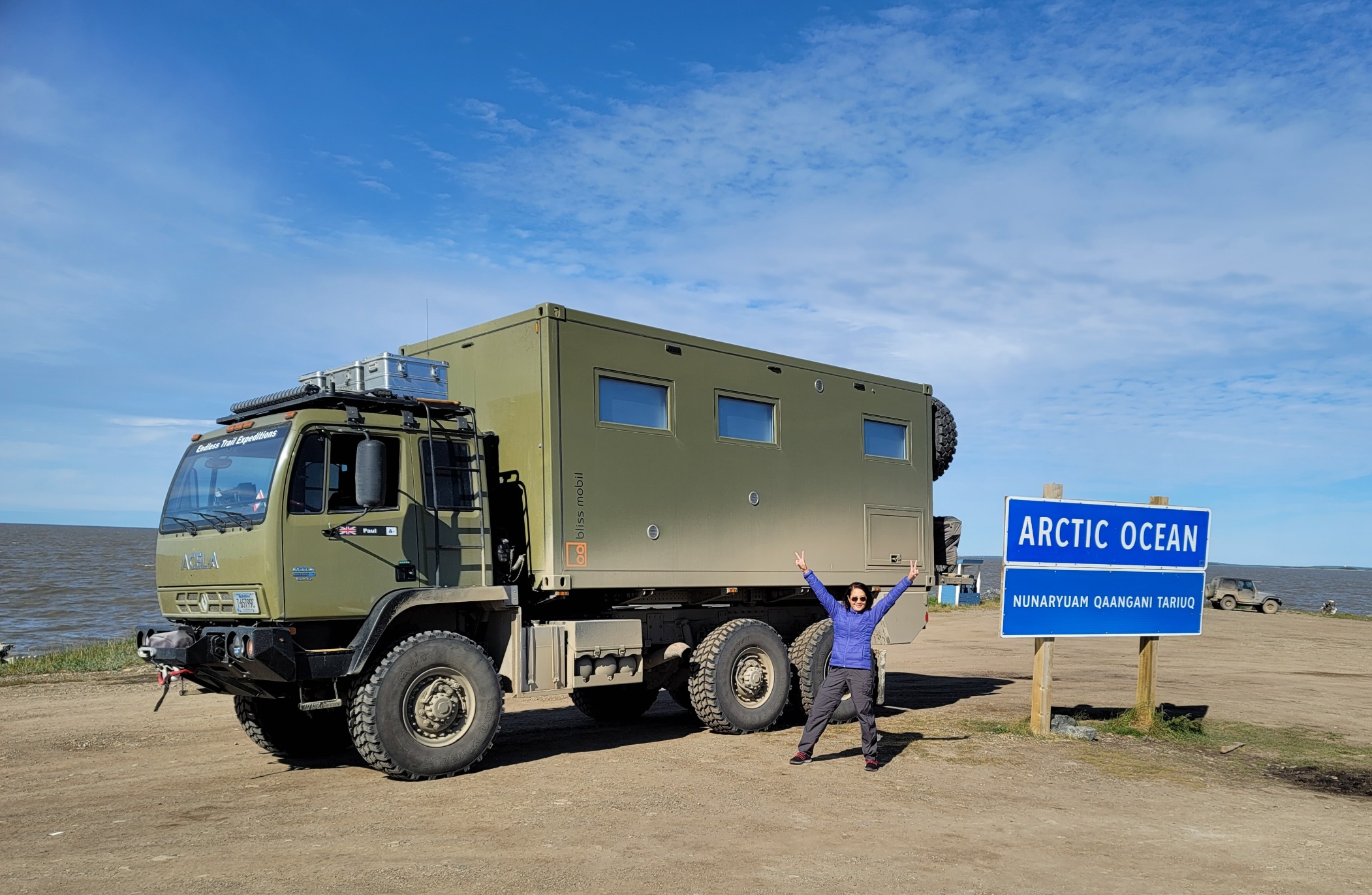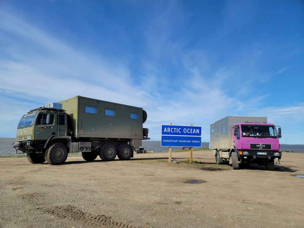We’ve finally arrived at Tuktoyaktut. The name Tuktoyaktut means “resembling a caribou.” Tuk is a quiet town right on the edge of the Arctic ocean with a population of about 937 people. We met up with Joe and Elfie at the Arctic Ocean sign where the Dempster hwy ends and a few steps to touch the arctic ocean.