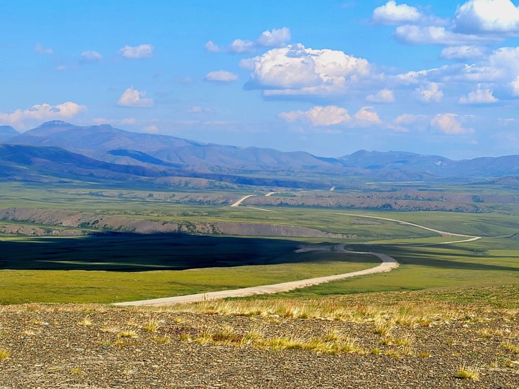 On the way out, we stopped at the”Top of the Hill ” for lunch where we got fogged in on the way up. Today is a beautiful clear day where you can see an amazing 360 view of the tundra. The landscape is like a perfect painting of nature with rolling hills, blue sky, and out in the distant, the road is weaving around the hills like a roll of ribbons being laid out across the land.