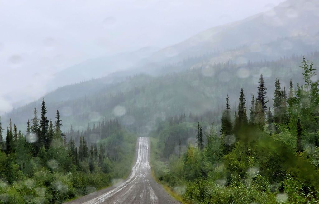 Today will be a long commute day.. It’s been raining on and off today but by the time we reached the tail end of the Dempster Hwy, it was pouring rain.