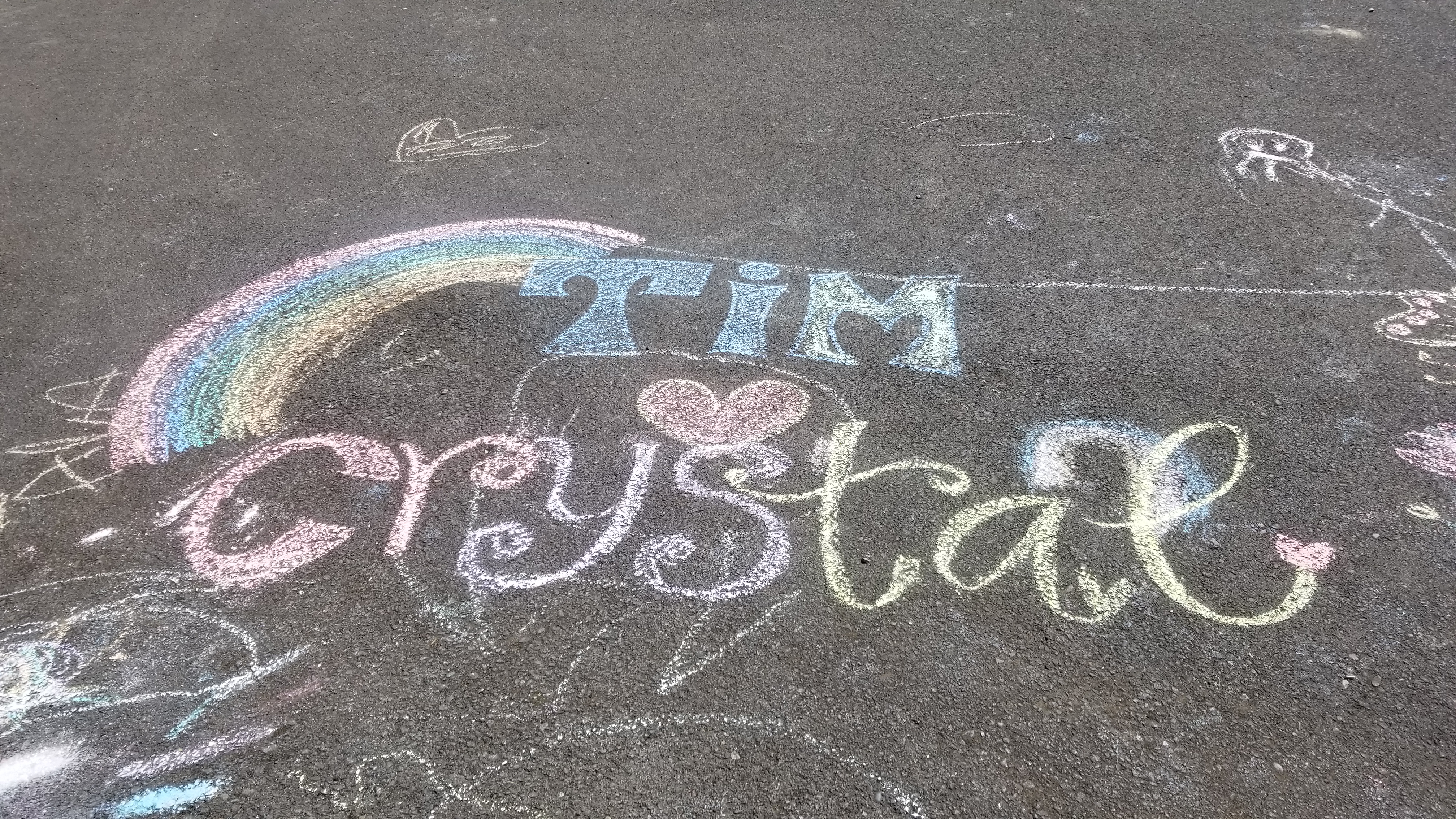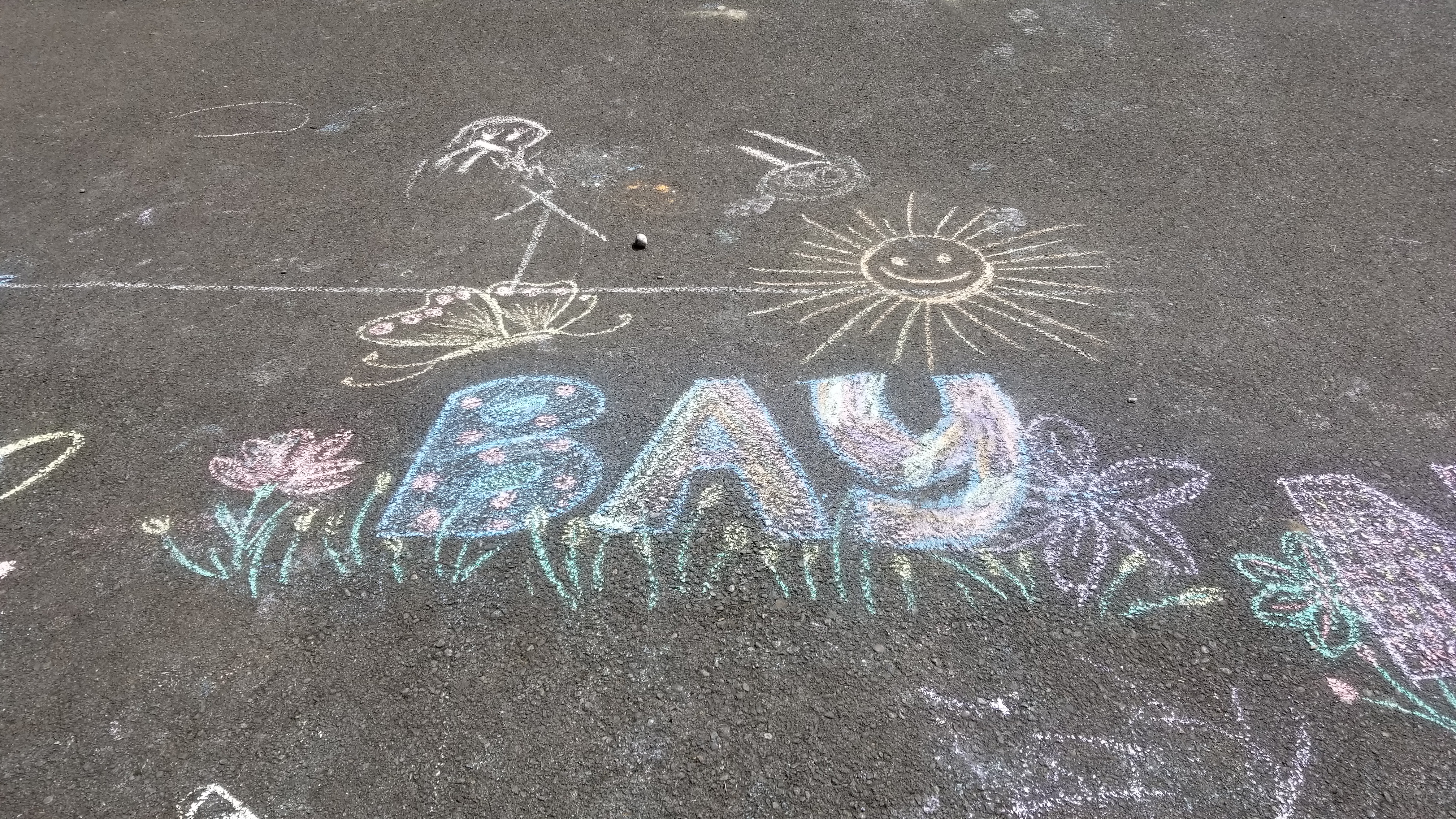 On our way to Eagle Creek to meet up with Tim, a new friend on Instagram who offered us to park at their property for 2 nights while we visit Portland and the surrounding areas . They also offered to make dinner for us. Tim, Crystal, Bay, Nova (5 yr old twins) – what a beautiful and wonderful family. Upon arrival, Tim and the twins were outside waiting to welcome us. I saw chalk drawings on their driveway, so I offered the girls to write their names and decorate them. We had fun doing it while Paul showed Tim the BAT.