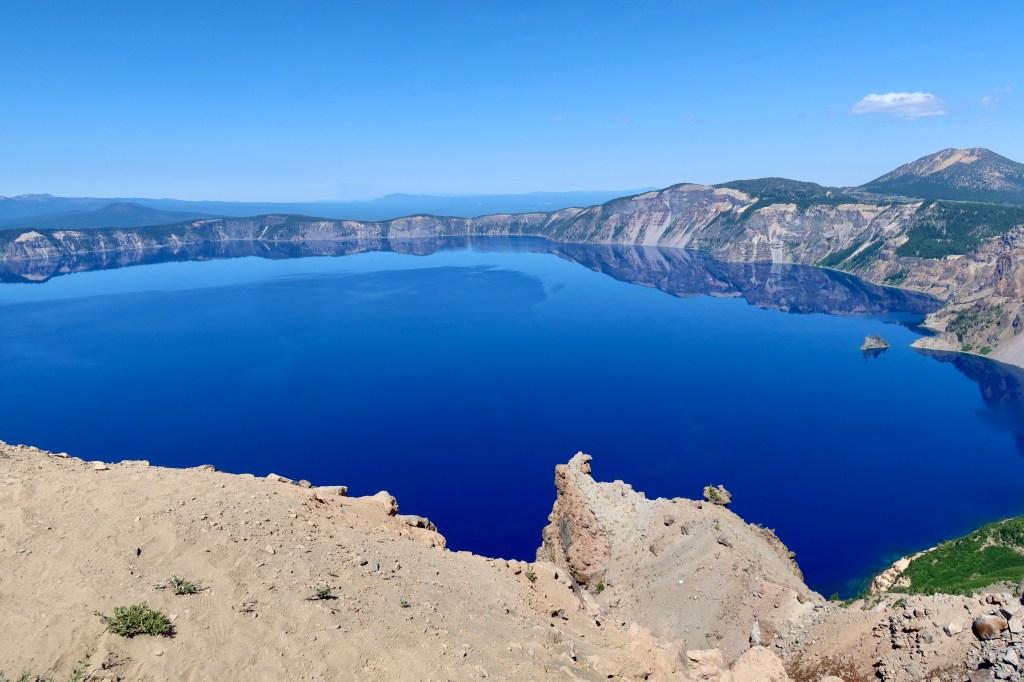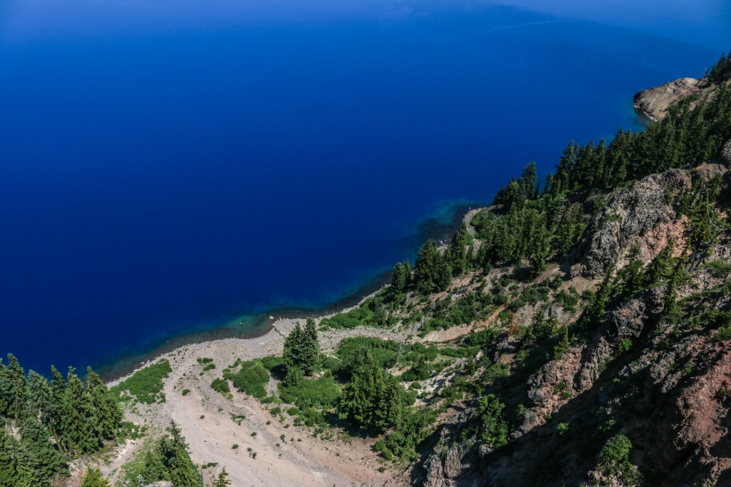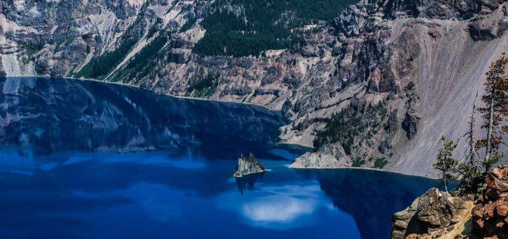 The shade of blue at this lake is indescribable, maybe deep royal blue might be close, but I’m not sure if there’s a name for this shade of blue just yet. It is as though a deep blue silk cloth has been draped across this crater and topped with evergreen pines. If you see it in a picture, you’ll think that it has been overly post-processed or photoshopped, but I assure you such beauty does exist on earth. What a magnificent God’s creation for all of us to enjoy and cherish for many generations.
