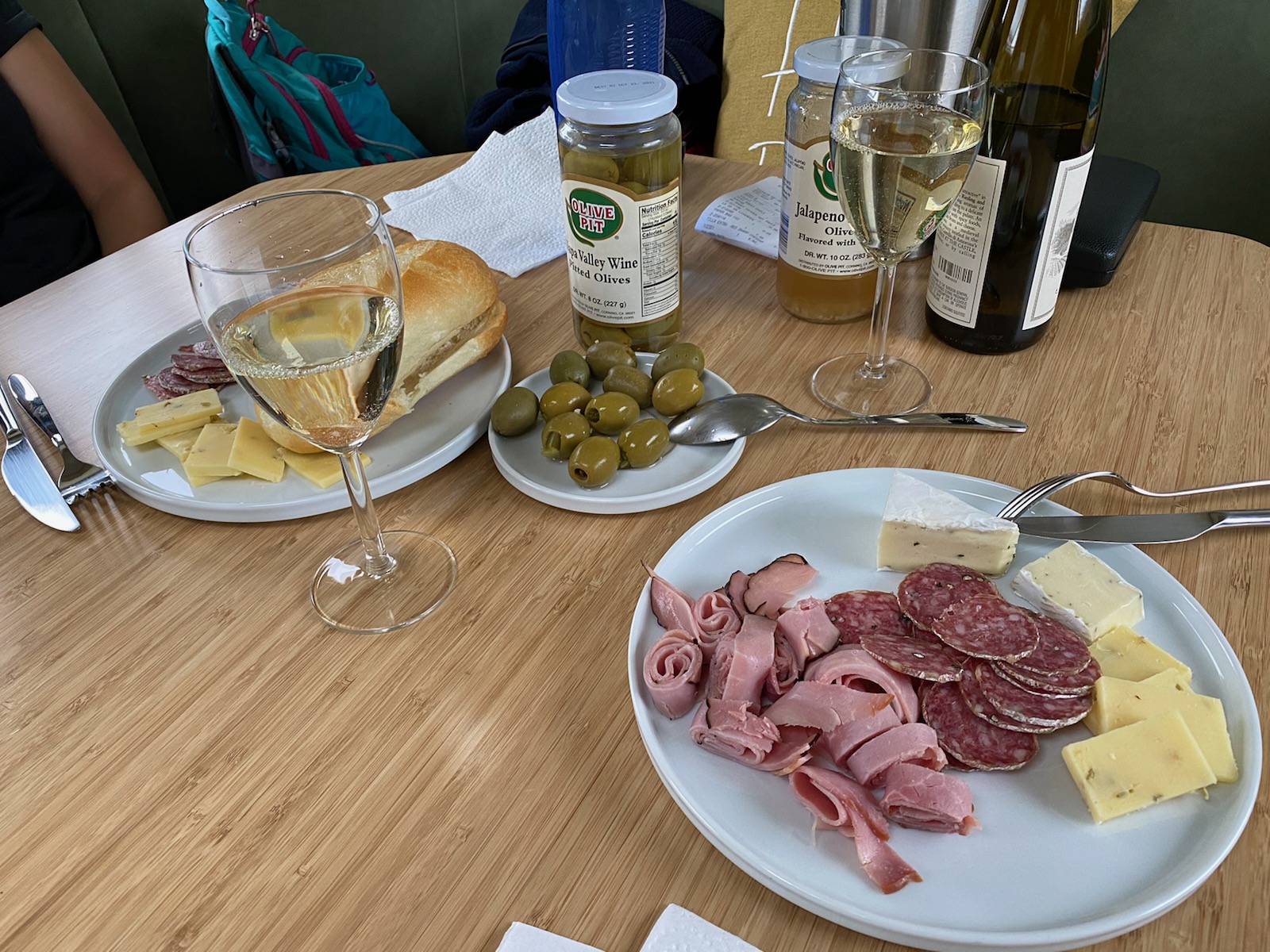 Then it was back to our ‘free campsite’ for a rather pleasant ‘ploughmans’ with a pleasing wine from our purchase spree in Napa valley (see earlier post from California).