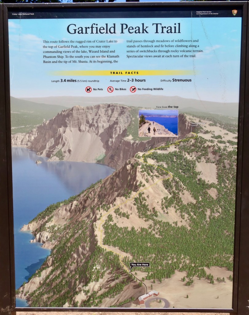 7/18/20 We were lucky enough to get a second day at Crater Lake Mazama camp site without any prior reservation although we did have to move to another specific site. We decided to hike the Garfield Peak near Rim Village, a 3.4 miles round trip. It doesn’t sound like much but it was quite strenuous as it was uphill all the way. Unfortunately, we didn’t wear hiking shoes, just walking shoes so it made the hike a little more challenging in both directions, up and down hill. This hike reminds me of Angels Landing in Zion National Park, not as technical, but still challenging to summit at 8,054 feet looking down at the crater and the village. Three hours+ later, we were exhausted, sweaty, and hungry as we didn’t eat a proper lunch before hiking, but it was sooo worth it and satisfying to conquer another mountain, yay!