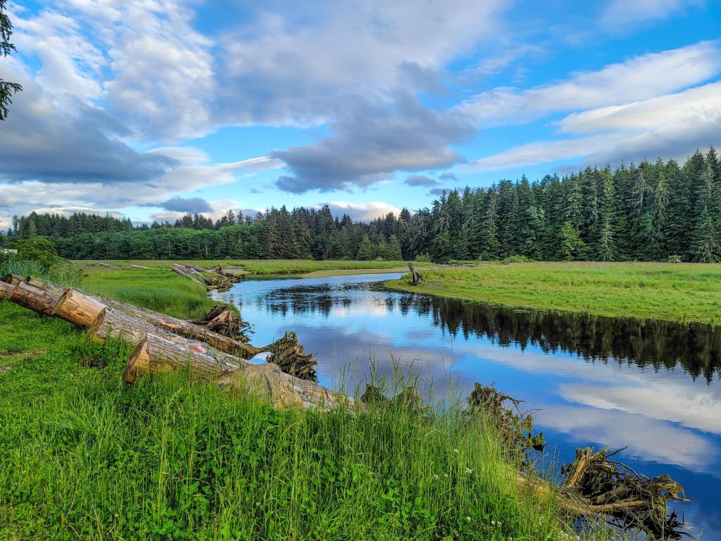Charlie also offered to take us on a hike nearby, he said it’s a flat trail but a little muddy. We’re good for it. The trail is in the woods, and it turns out, Charlie and his wife , Lina, created this trail for others to enjoy. It’s heavily wooded, but then opens up to a wetland with a meadow, tall green grasses and wild flowers.