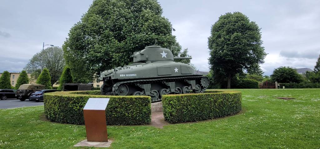 We drove to a campsite in Bayeux to attend the various D-Day commemoration. Of course the campsite was fully booked and we didn’t have reservation. A local man was taking pictures of BAT as we came out from the registration office, so gave us some pointer for another campsite that was not full, about 9 miles away. It was a very nice camping spot but further away from all the events. So we decided to go to the British cemetery and museum for the day, luckily upon arrival to the museum, there was an overnight parking right next to the museum. It’s not glamorous, but it was a great parking spot for BAT so we can visit the various museums nearby on foot.