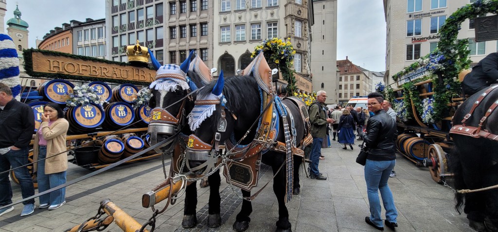When we got out of the subway, we were overwhelmed with the massive crowd in the square as there was a huge Munich beer fest happening with men and women in their traditional costume, music, parade and the works.