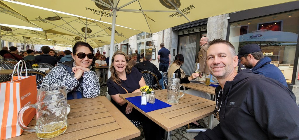 We left the square to walk around and stumbled onto the Viktualienmarkt, a vibrant open-air market in Old Town with fresh produce, Bavarian eats, and artisanal goods, beer garden and local culinary delights amidst a historical farmers’ market setting (ref Trip Advisor).