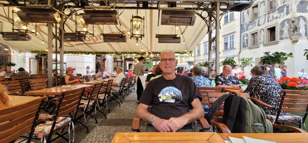 We had an early dinner at the Gasthof Alter Fuchs (The Fox) restaurant. We sat outside to enjoy an Austrian meal and people watch. I notice there are still a lot of smokers in Europe.