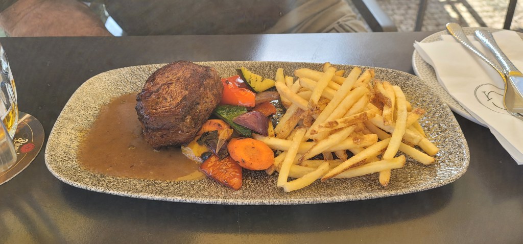 We got off the cruise and had dinner at the beautiful waterfront restaurant that I spotted when I initially got off the tram earlier in the day.